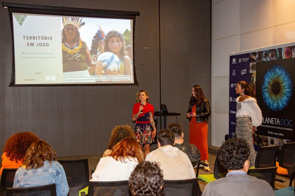 A jornalista Kátia Klock apresentou o projeto “Território em Jogo – mulheres indígenas, futebol e resistência”, um longa-metragem de 80 minutos, que será produzido nos idiomas Português, Xokleng, Guarani mbya, Akuê, Nheengatu, Tukano e Baniwa. Cinthia Creatini da Rocha e Valeska Bittencourt, proponentes do projeto, explicaram a ideia, as personagens e falaram sobre a importância do futebol para as mulheres indígenas. Elas falaram um pouco sobre cada personagem, que vão contar no filme sobre a sua comunidade e sobre a importância do futebol. O roteiro e a direção será da produtora cultural indígena Graciela Guarani-Kaiowá.